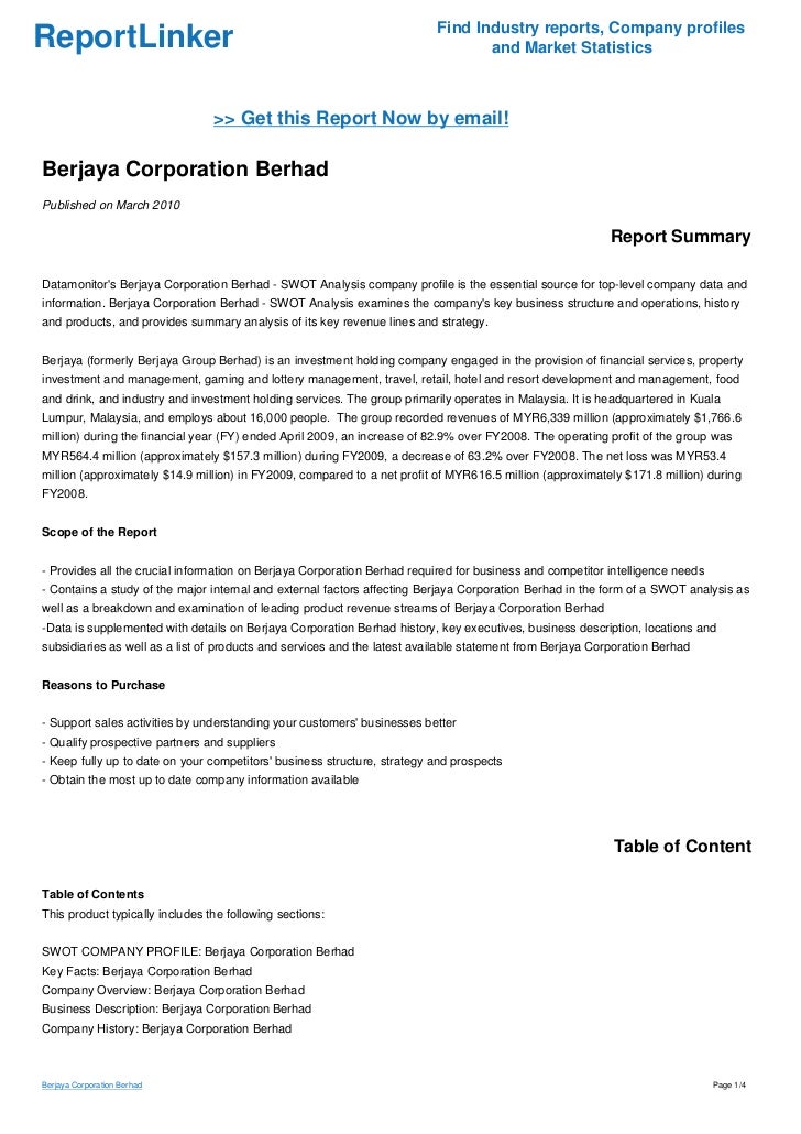 Berjaya Corporation Berhad Swot Analysis Company Profile