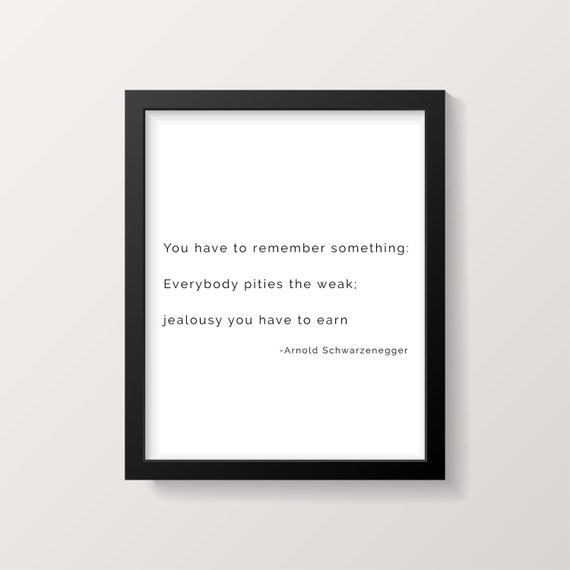 Arnold Schwarzenegger Success Quote Print Everybody Pities The Weak Jealousy You Have To Earn Motivational Print